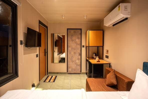 Our group of four had an absolute blast staying in the L-shaped pods! The layout was perfect for us, offering both privacy and great shared spaces. We loved the outdoor seating, and the Jacuzzi was a dream. Having a bathtub inside was the cherry on top. It was the ideal mix of fun and relaxation. Thank you, IndiPods, for an amazing experience—we’ll definitely be back!